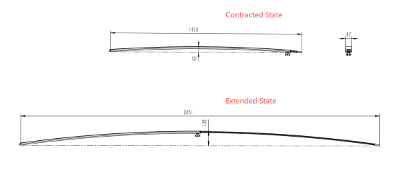 Flexible Sizing: Collapses to 1.416m (L) x 0.042m (H) and extends to 2.651m (L) x 0.108m (H) for adaptable coverage.